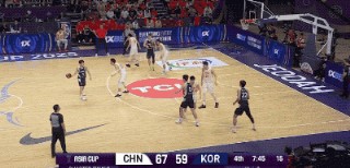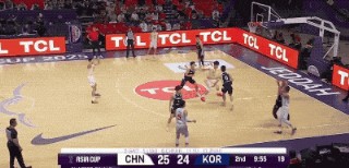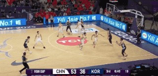 不过,韩国队并不是一上来就那么铁。反而他们比我们进入状态更早,甚至可以用手感滚烫来形容。第一节的大部分时间,韩国队都是比分领先的一方。而造成对手压制我们的原因无非是,开场连续两记顶着防守命中的三分,把我们惊出一身冷汗。